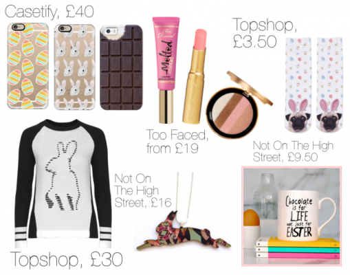 How about adding some Easter fashion to your wardrobe with these cute Pug Bunny socks (£3.50) and this Monochrome Bunny Print Jumper (£30) both available at Topshop.