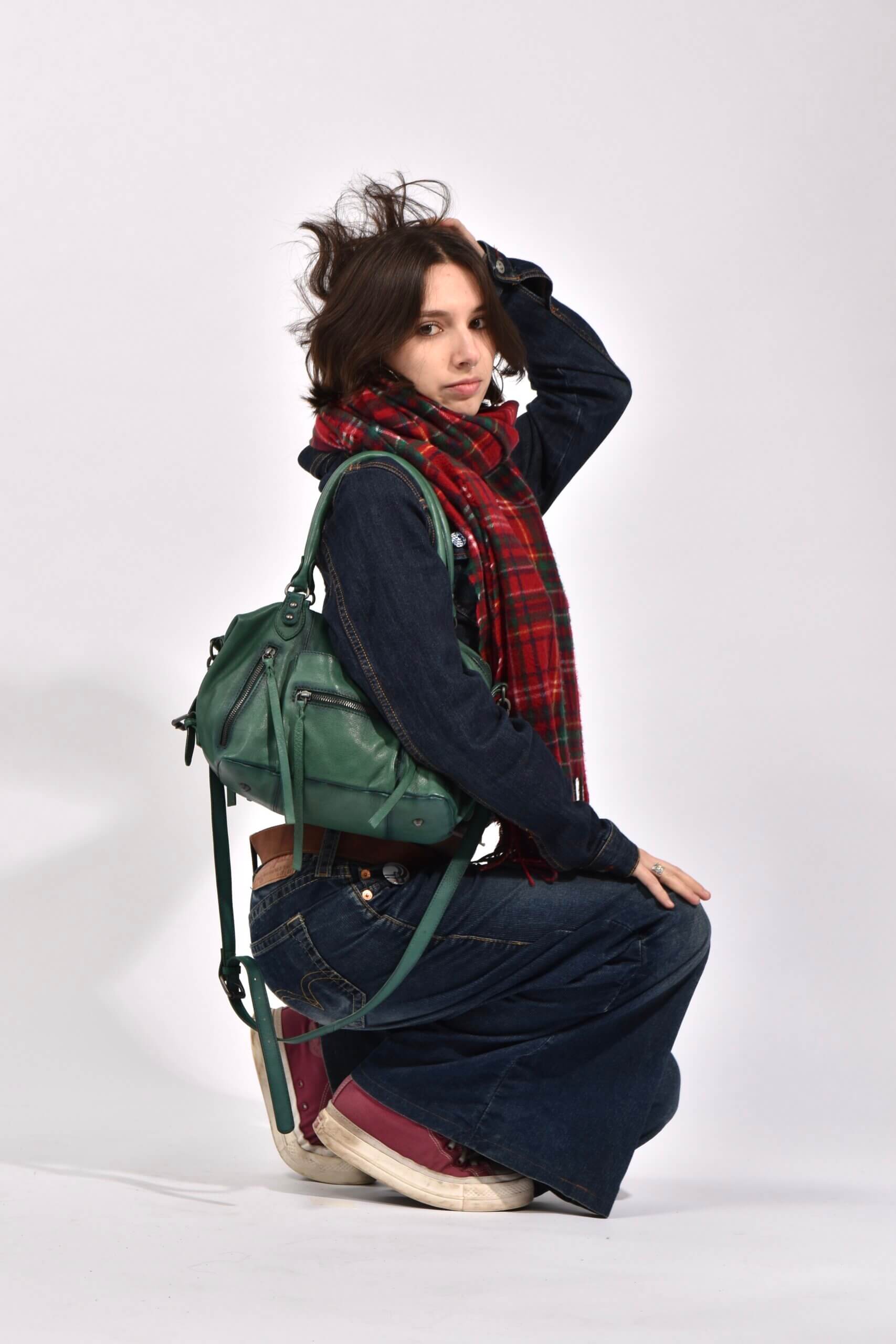My first outfit leans into the controversial double denim look, and I have to say, I absolutely love it… as long as the shades match! These baggy vintage Levi’s jeans are the perfect choice for a long uni day because they’re so comfortable it barely feels like I’m wearing denim. To keep that relaxed vibe going, I paired them with my Converse trainers which are the ideal shoe for my walk to uni. Also, the slight platform gives me that extra height I always appreciate. Moving up, I layered a fitted denim jacket that I found in a charity shop with a red and green tartan scarf. I actually stole this piece from my mam’s collection, and I’m yet to find a scarf so perfect. It’s soft, cosy in cold weather, and doesn’t leave fluff all over your clothes!