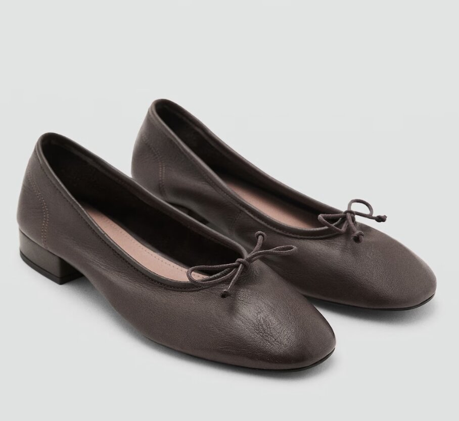 The partnership of jeans and ballet flats is unstoppable. Mango’s leather ballet flats can deliver just what you need for £49.99.