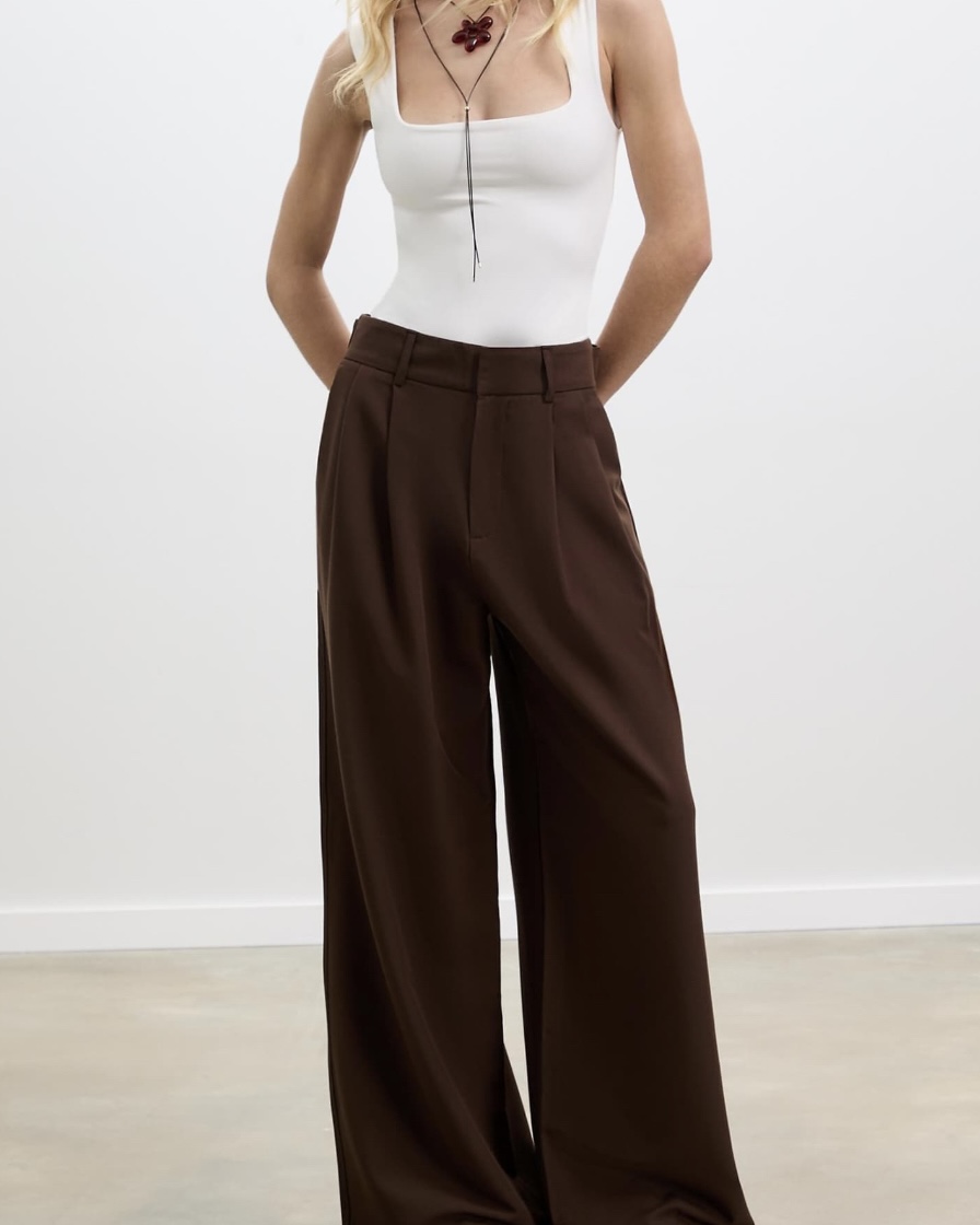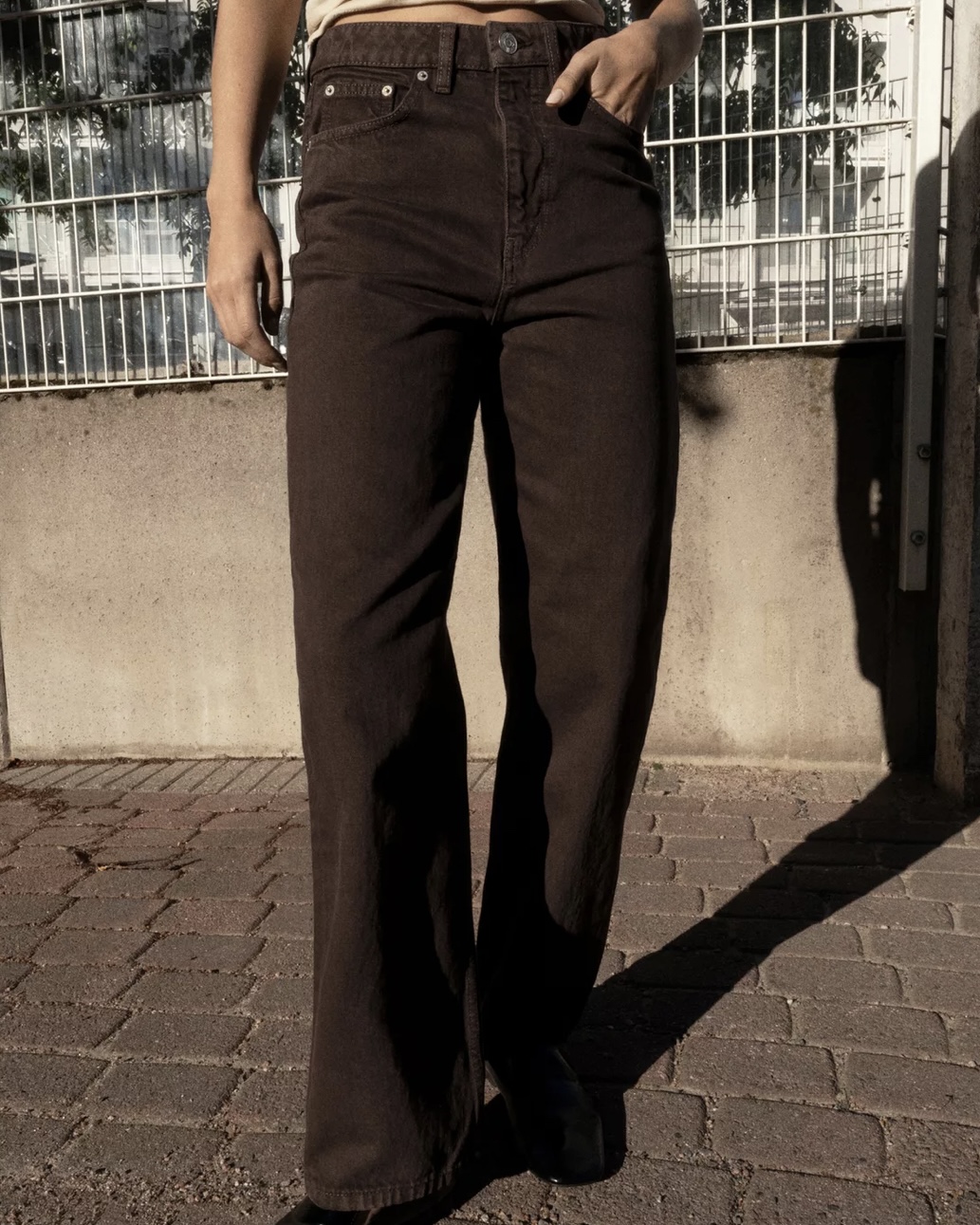 A tailored wide-leg trouser offers a mature and minimalistic silhouette that can be styled hundreds of ways. Join the Chocolate Brown trend with Stradivarius’ trousers for £29.99.
