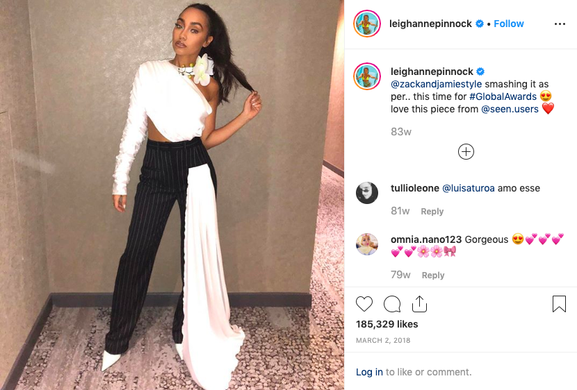Leigh-Anne regularly wears outfits inspired by the islands her ancestors are from. Being from a mix-raced, white and black-Caribbean background, she pays tribute to her culture with stunning colourful pieces on her Instagram.