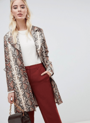 Asos, UNIQUE21 oversized coat in snake print, £78